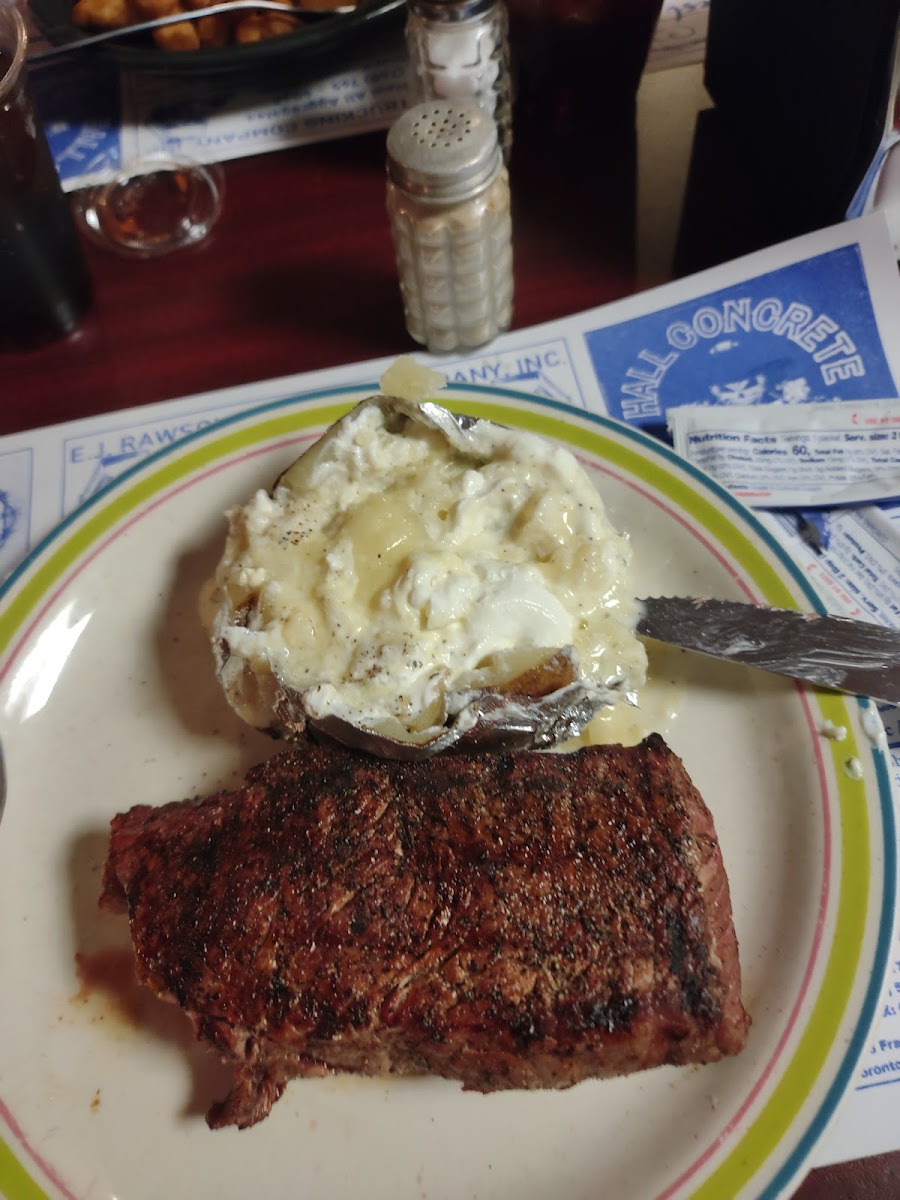 Really good steak !! I suggest med we’ll or more cause of how thick they are !! House dressing is ok but the red onions in it were soooo good !!! Great atmosphere even better tunes playing and of course the football game was on and that was just fine with us !!!! We will definitely be back out soon!!! Get there early like five as it fills up pretty quickly the waitresses were really nice and attentive so that’s always a plus they had like four TVs also and the beer was really really cold so that was a big plus !