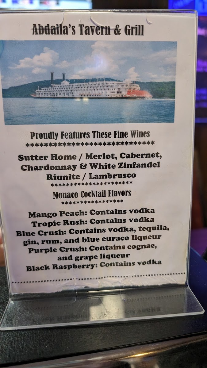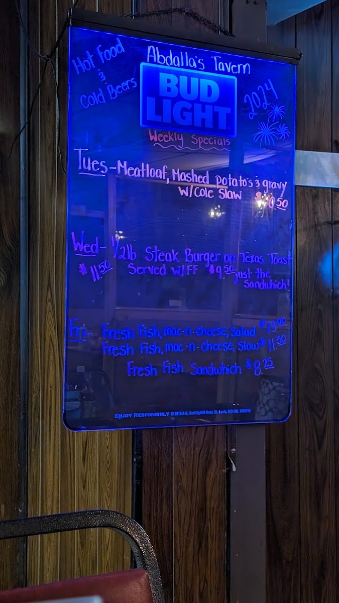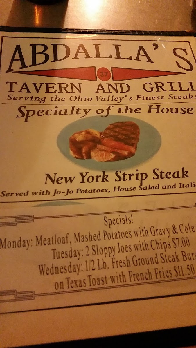 Abdalla's Tavern and Grill Menu