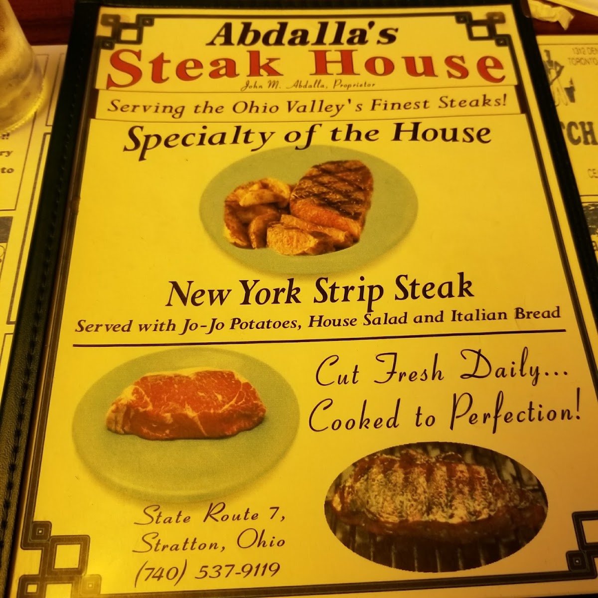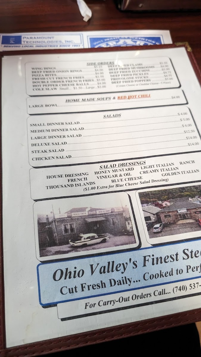 The menu centers around generous portions of expertly cooked steaks, including favorites like the 14oz strip steak served with mushrooms, onions, and potato wedges, or a tender sirloin steak. For lighter options, the steak salad and other fresh salads provide a refreshing balance without sacrificing flavor. Seafood lovers will appreciate offerings such as the shrimp dinner and fresh batter-dipped fish, alongside traditional sides like coleslaw and baked potatoes.